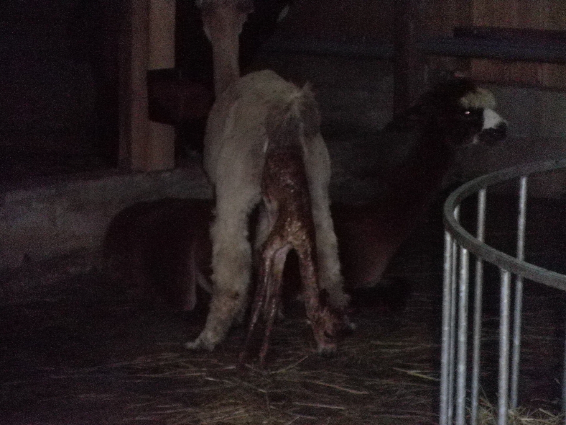 Eine kurze Abwesenheit von oft nur wenigen Minuten genügt dann schon und das Alpakafohlen ist schon geboren.