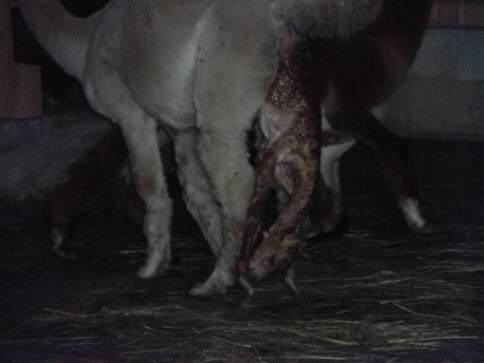 Wobei eine einzige Geburt eine Ausnahme darstellt. Die trächtige Stute, schon mehrfache Mutter war vom Termin schon soweit, und verwechselte ein, um die Mittagszeit geborenes, Fohlen einer anderen Stute mit ihrem Eigenen. Dies löste dann nach wenigen Stunden die Geburt aus (ca.16 Uhr)